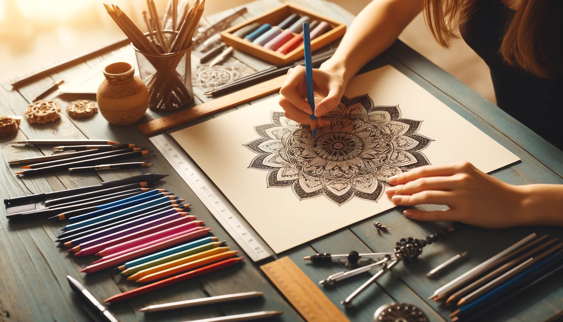 Cada clase está guiada paso a paso con cámara cenital y acompañamiento simbólico. Trabajamos con acuarelas, mandalas, zentangle, geometría, ejercicios de composición… pero sobre todo, trabajamos con tu historia, tus emociones y tu bienestar.